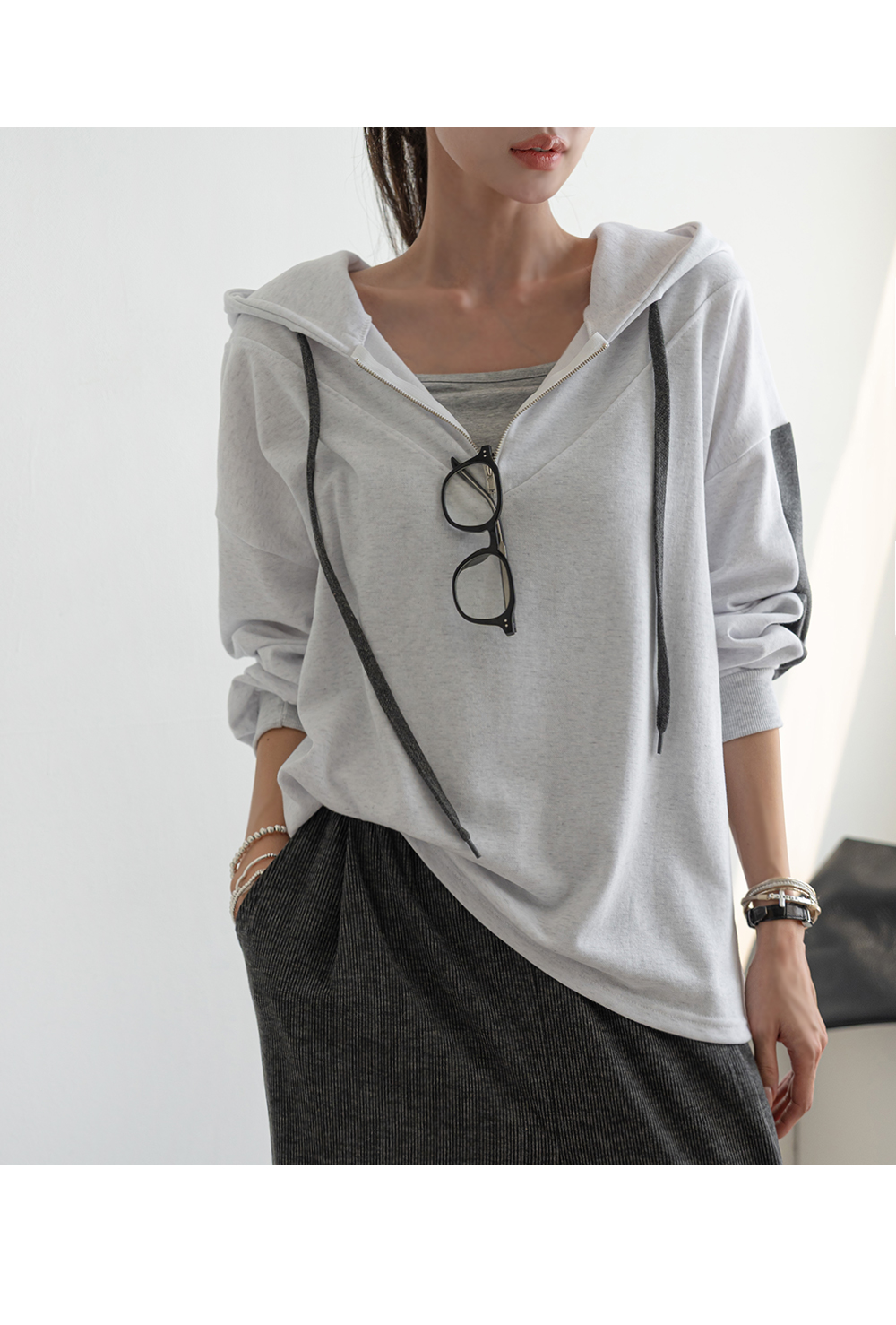 원피스라 편안하고 캐쥬얼해서 또 손이 가는! 후드 롱 원피스