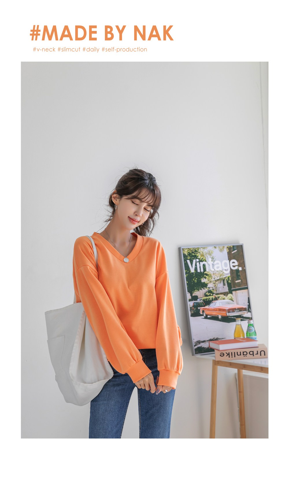 숄더 절개라인으로 깔끔하게~ V넥 베이직 코튼 긴팔 티셔츠 #NAK MADE.